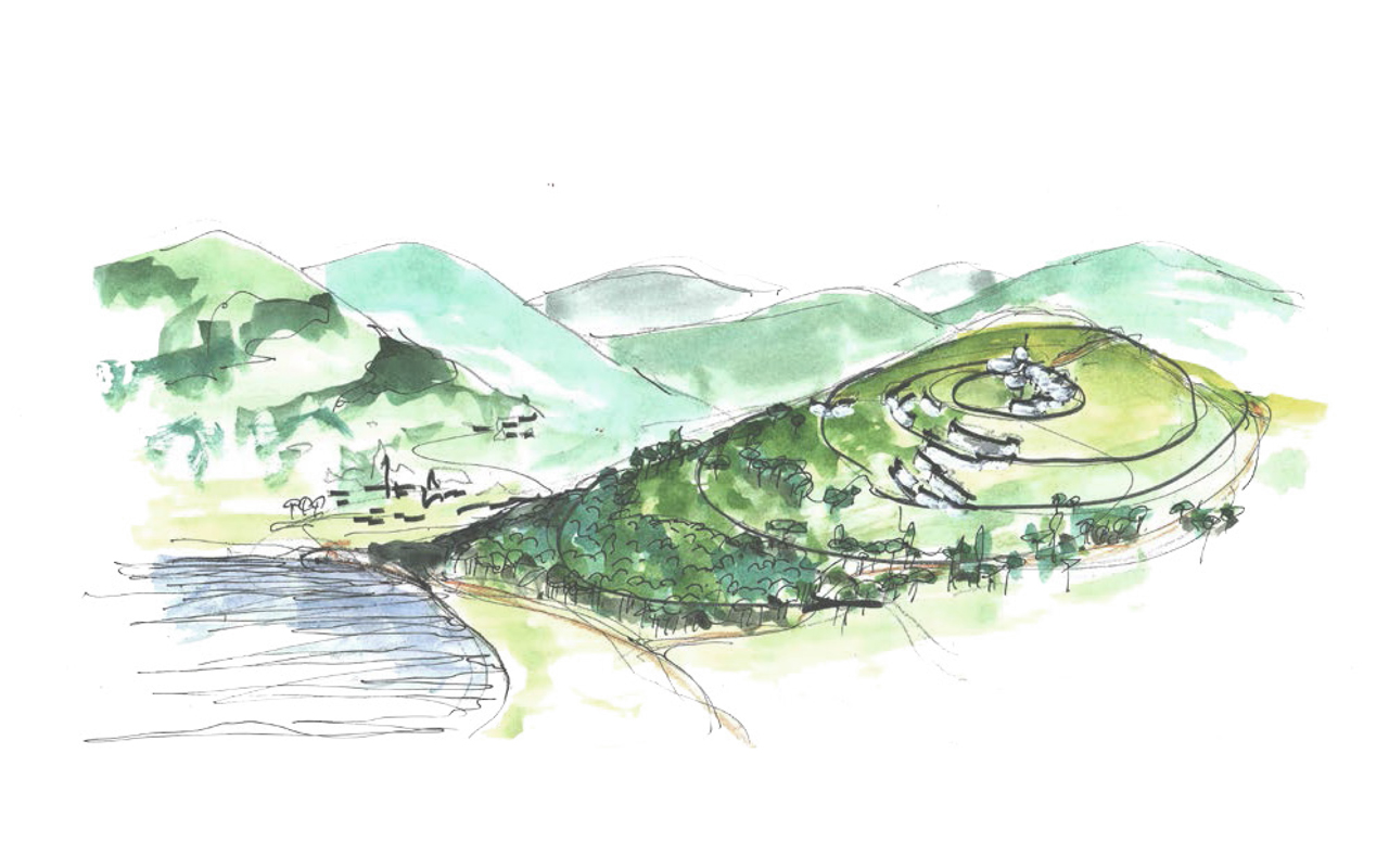 The landscape of Butaro is stunning and was asking to be celebrated and protected. The overall shape of the future complex resembles a Ginkgo Biloba leaf and the proposed arrangement of the site also concurs with the Ginkgo leaf: the stalk being the central entry point of energy, fanning out over the leaf with the buildings aligning the contours in a strip arrangement.
